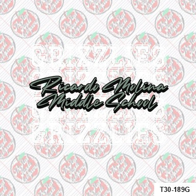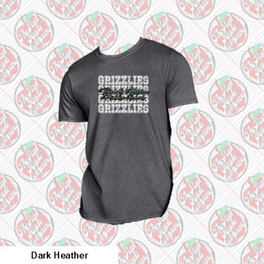 This sleek and bold design showcases “Grizzlies” in a repeated distressed white varsity font stacked vertically, creating a strong visual rhythm and school pride. Cutting across the repeated backdrop in stylish, cursive lettering is “Ricardo Molina Middle School” in sharp silver tones, giving the shirt a modern, edgy look. The contrast between block lettering and smooth script delivers the perfect blend of attitude and class — exactly what RM-MS Grizzlies are all about.