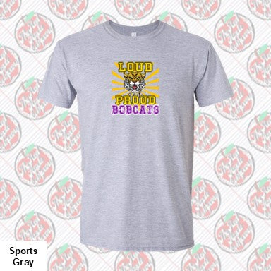 Turn up the school spirit with the "Loud and Proud" shirt — now available in Navy, Black, Sport Grey, and Purple! Whether you're on campus or at a school event, this bold design lets everyone know you represent Ryan Elementary – Home of the Mighty Bobcats with pride.