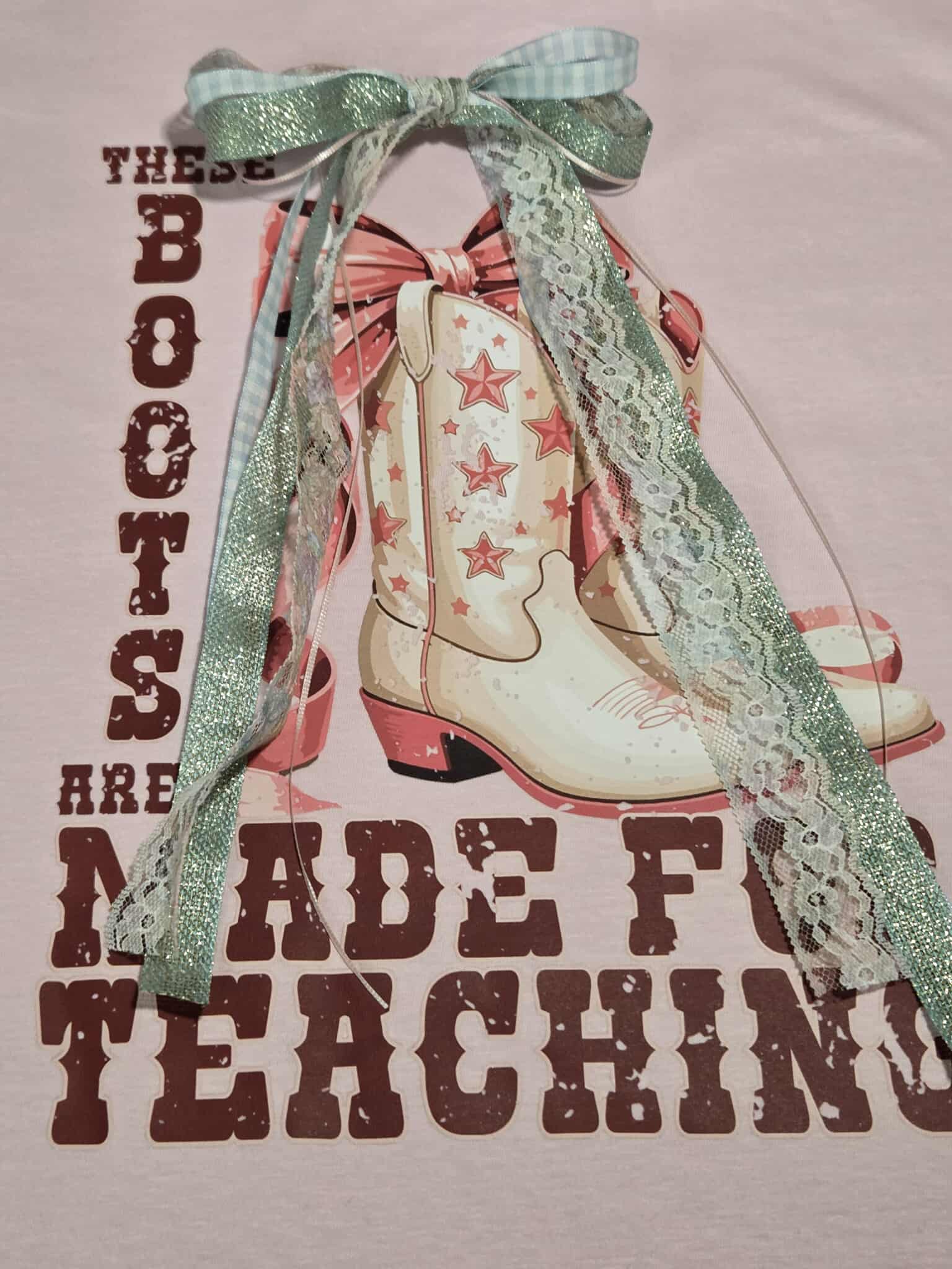 Our new vintage teacher shirts are stamped with school day charm + come in 4 designs you'll love! Handmade sew bow detail - removable. Don't miss the matching headbands to complete the look.